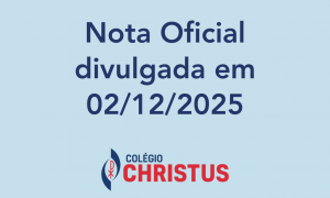 Na terça-feira (02/12/2025), o Colégio Christus divulgou, via veículos de imprensa de grande circulação, a Nota Oficial a seguir: Nota Oficial divulgada em 02/12/2025 O Colégio Christus vem a público esclarecer os fatos relacionados à ocorrência registrada nas dependências da unidade Christus Sul 3, na manhã desta terça-feira. É prioritário informar que nenhum dos envolvidos […]